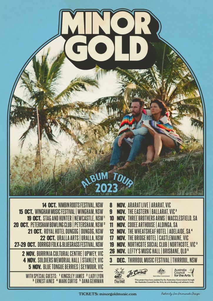Minor Gold (Tracy McNeil and Dan Parsons) have been touring up a storm in the US over the last couple of months, performing songs from their self-titled debut album. Now they bring their harmony-rich folk and country sounds back to Australia for a comprehensive run of dates, running from this weekend in Newcastle, through to the Thirroul Music Festival in early December.