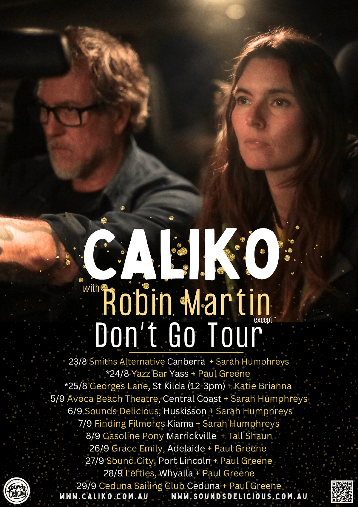 Based on the NSW South Coast, Caliko are a collaboration between singer/songwriters Vanessa Jade and Paul Greene. Jade wad first discovered by Kasey Chambers before being scouted by management team Winterman & Goldstein (Jet, The Vines, The Preatures etc). Since then she’s had a career working as a solo artist and then as lead singer/songwriter of Sydney indie band Hot Spoke, who were signed to Mercury Records. Greene has an enviable list of credits both as a producer (incl. Greg Arnold, James Blundell) and as one half of Hirst & Greene with Midnight Oil drummer Rob Hirst.