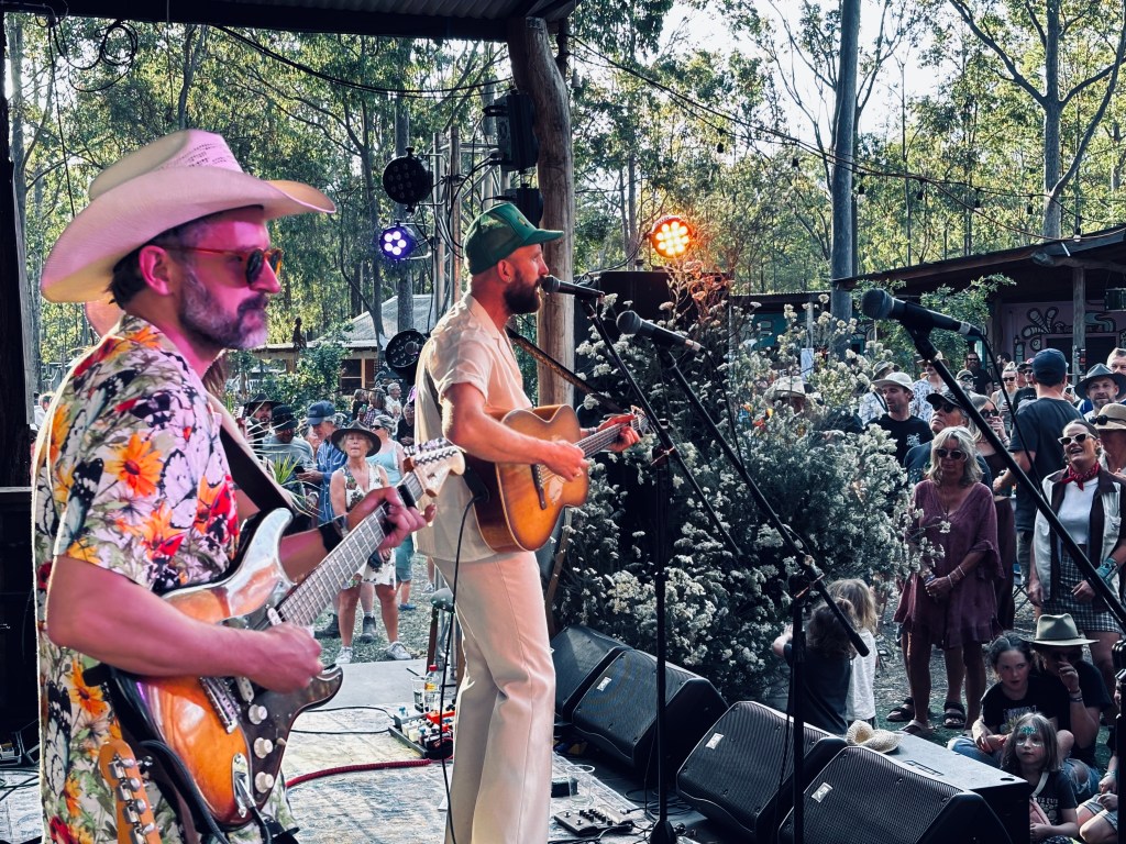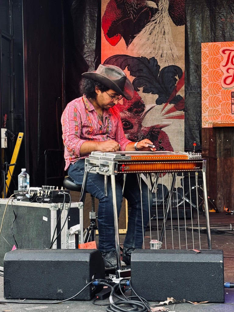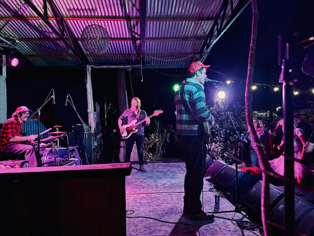 Day Three and everyone looks settled-in, familiar faces around each corner was they moved from food trucks to bars, market stalls to kids play areas. Weathered by sun and dust, ears abuzz from nearly 20 hours of music at this point. Even if one is feeling a tad worn out, that quickly changes as the music kicks into gear. Leroy MacQueen was an early revelation. With a punk irreverence and charm, they brilliantly channeled Orville Peck, Springsteen and Chris Isaak, with covers standing toe to toe with originals. David M. Western was another of the many Victorians that made the trek north and he showed why his album On, On & On is so damn good, rolling slacker sounds mixing jangle and twang, like Townes Van Zandt and MJ Lenderman covering Pavement songs. There are new recordings on the way too!